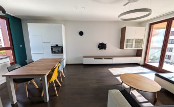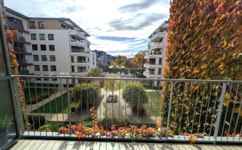 - przestronnego jasnego salonu połączonego z kuchnią i jadalnią, z wyjsciem na duży i słoneczny taras (8m2) z widokiem na zielony dziedziniec.- dużej sypialni z garderobą