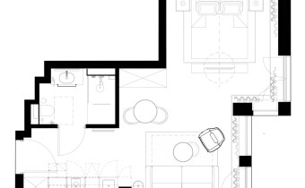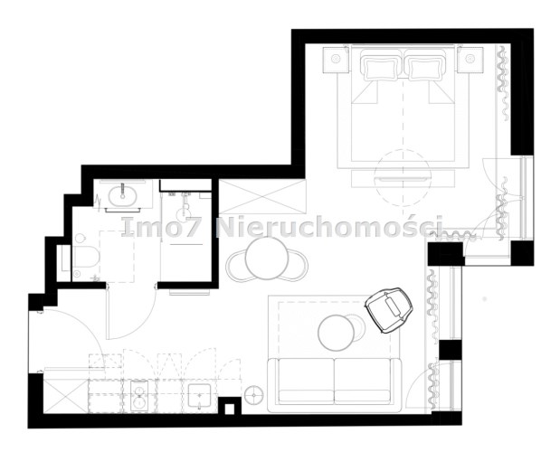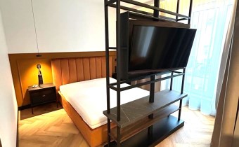 sypialnia (częściowo oddzielona od salonu z łóżkiem podwójnym i telewizorem obrotowym)