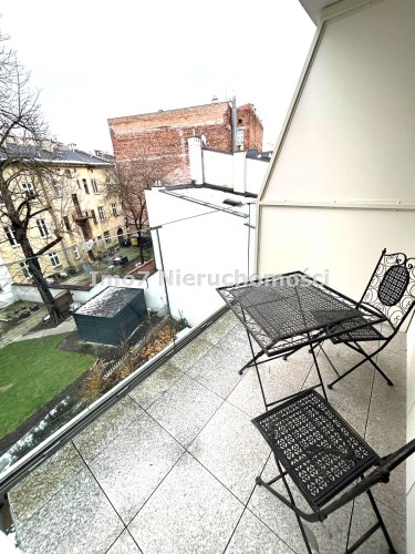 taras (duży i słoneczny z widokiem na zielone podwórko, od strony dziedzińca).
